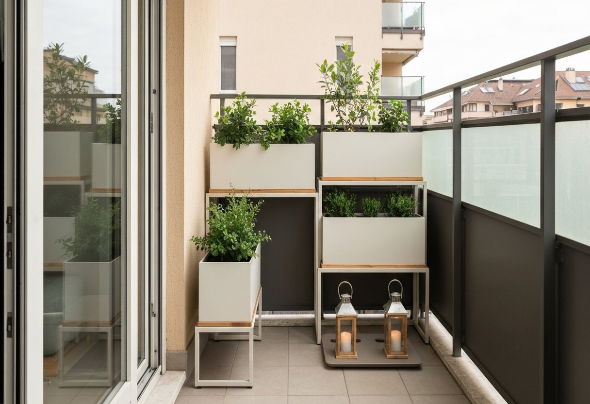 La tendenza guida verso fioriere rettangolari poggiate su supporti in metallo verniciato o legno. L’elevazione libera il suolo, rende più semplice la pulizia, facilita l’irrigazione e, soprattutto, dona una freschezza architettonica all’insieme. Le piante smettono di “abitare” un contenitore e diventano protagoniste al pari di arredi e luci, con volumi che dialogano con la struttura del balcone e la sua luce naturale.
